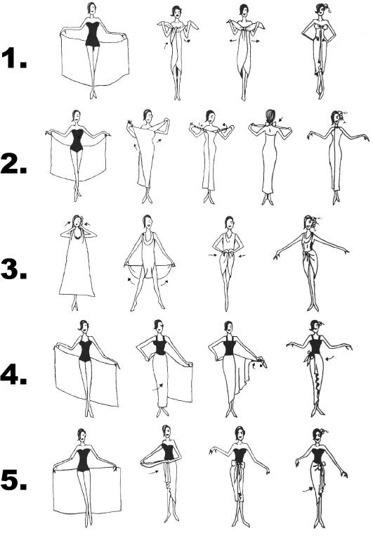 Pour ma part, je vous ai fait une petite sélection avec cette image, et 5 façons de porter son paréo : 2 jupes et 3 robes.
